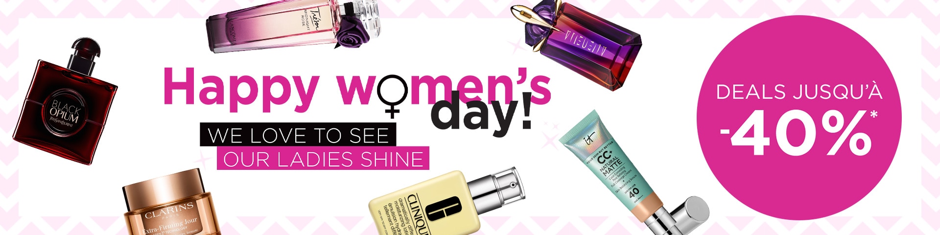 *Profitez de réductions sur une sélection de produits des marques Elie Saab, Beautical, Kayali, Clay & Glow, Collistar, Hugo Boss, Kenzo, Lancaster, Shiseido, Narciso Rodriguez, Origins, Clinique, Clarins, IT Cosmetics, Armani Beauty, Lancôme, Biotherm, Mugler et Yves Saint Laurent. Offre valable uniquement du 23/02/2026 au 08/03/2026 sur l'eshop luxembourgeois et toutes les parfumeries ICI PARIS XL ouvertes du Grand-Duché de Luxembourg. Non valable à l'achat de Gift Cards, Gift Cheques et les marques Rituals, Atelier Rebul, K18, MAC et The Ordinary. Non échangeable contre de l'argent comptant. Sous réserve d'éventuelles erreurs et modifications.