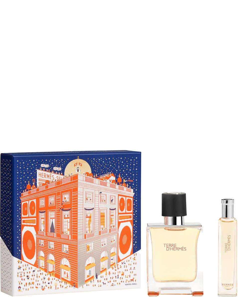 Le coffret est composé d’une Eau de Toilette Terre d’Hermès de 50 ml et d’une Eau de Toilette Terre d’Hermès nomade de 15 ml.