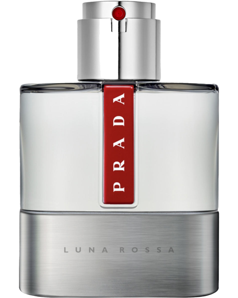 Le flacon du parfum Prada Luna Rossa s'inspire des lignes technologiques et dynamiques des voiliers de l'extrême. L'argent intense est équilibré par la ligne rouge iconique de Prada, comme symbole de la franchise.La franchise Luna Rossa de Prada