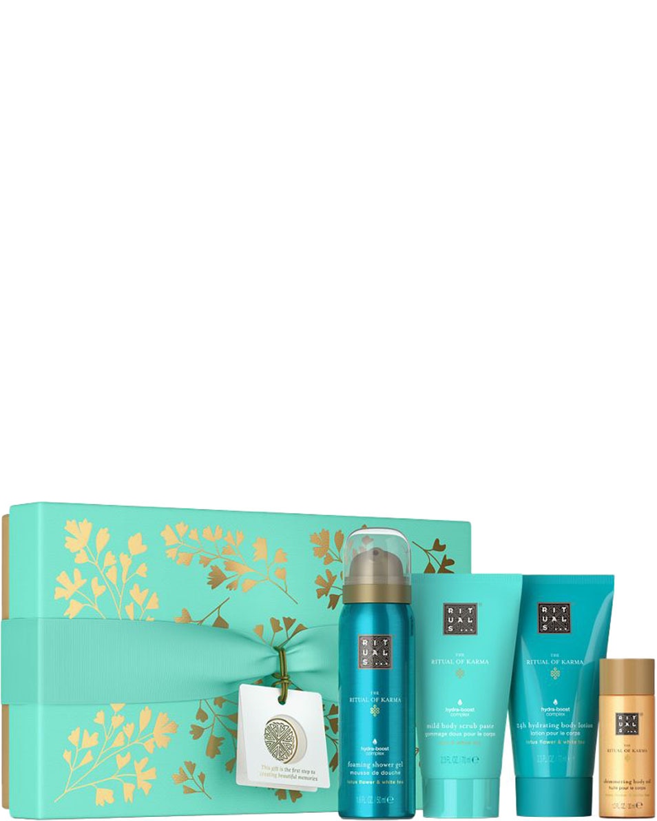 The Ritual of Karma 24h Hydrating Body Lotion: Aqua/Water, Ethylhexyl Stearate, Helianthus Annuus (Sunflower) Hybrid Oil, Glycerin, Parfum/Fragrance, Xanthan Gum, Camellia Sinensis (White Tea) Leaf Extract, Nelumbo Nucifera (Lotus) Flower Extract, Nannochloropsis Oculata Extract, Porphyra Umbilicalis Extract, Aloe Barbadensis Leaf Extract, Silybum Marianum Seed Oil, Squalane, Cellulose, Sodium Stearoyl Glutamate, Microcrystalline Cellulose, Cellulose Gum, Alcohol, Phenoxyethanol, Benzyl Alcohol, Benzyl Salicylate, Limonene, Linalool, Hexyl Cinnamal, Alpha-Isomethyl Ionone, Citronellol, Citral, Citric Acid, Sodium Hydroxide.
